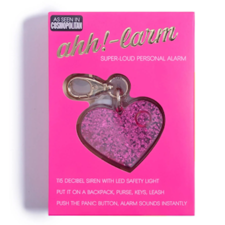 It looks cute and fashionable with the glitter heart design, but it’s also loud enough to catch anyone’s attention. I feel so much safer walking to my car at night. Easy to attach to my purse or keychain. Everyone should have one—stylish and practical personal safety at its best.